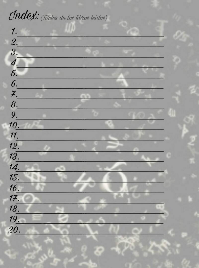Al inicio habrá una hoja para anotar el nombre del lector, seguido hay varias hojas para únicamente títulos.